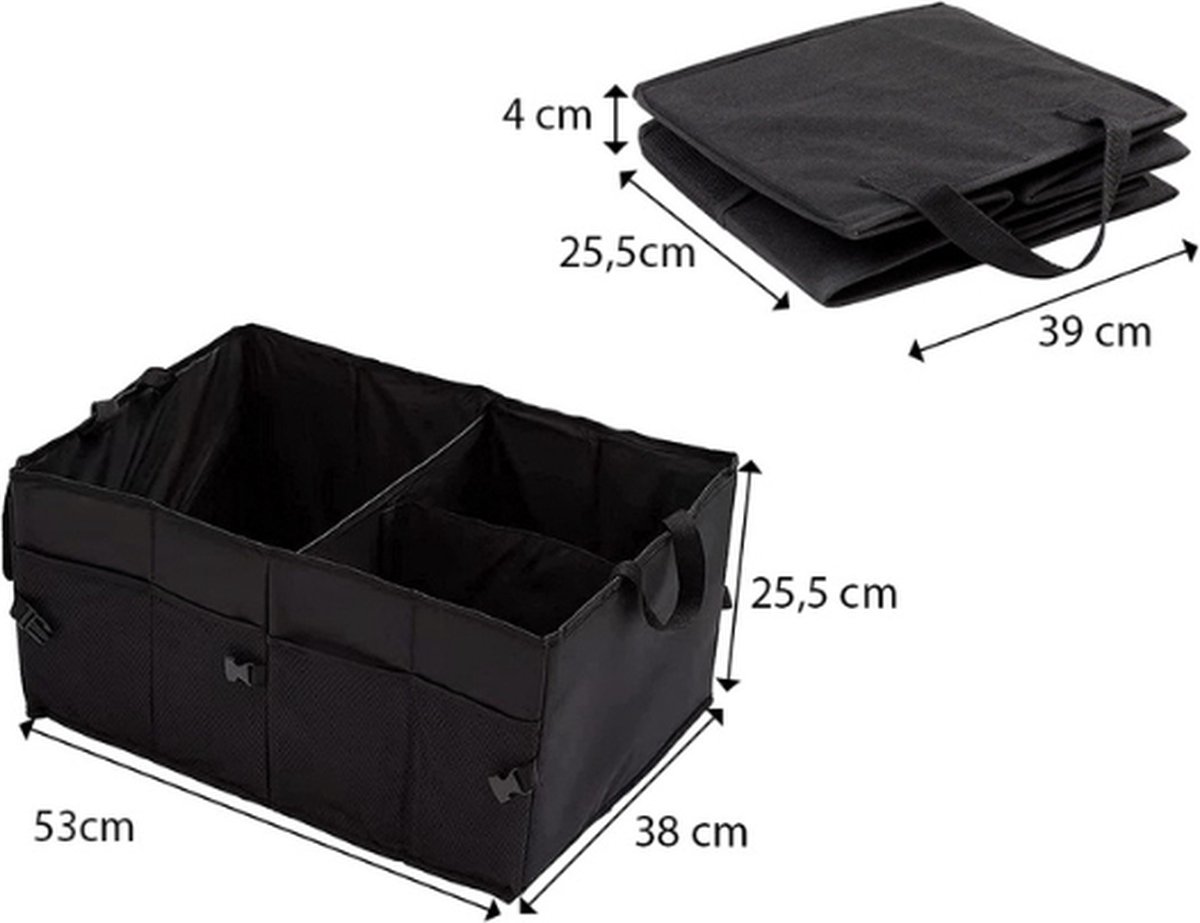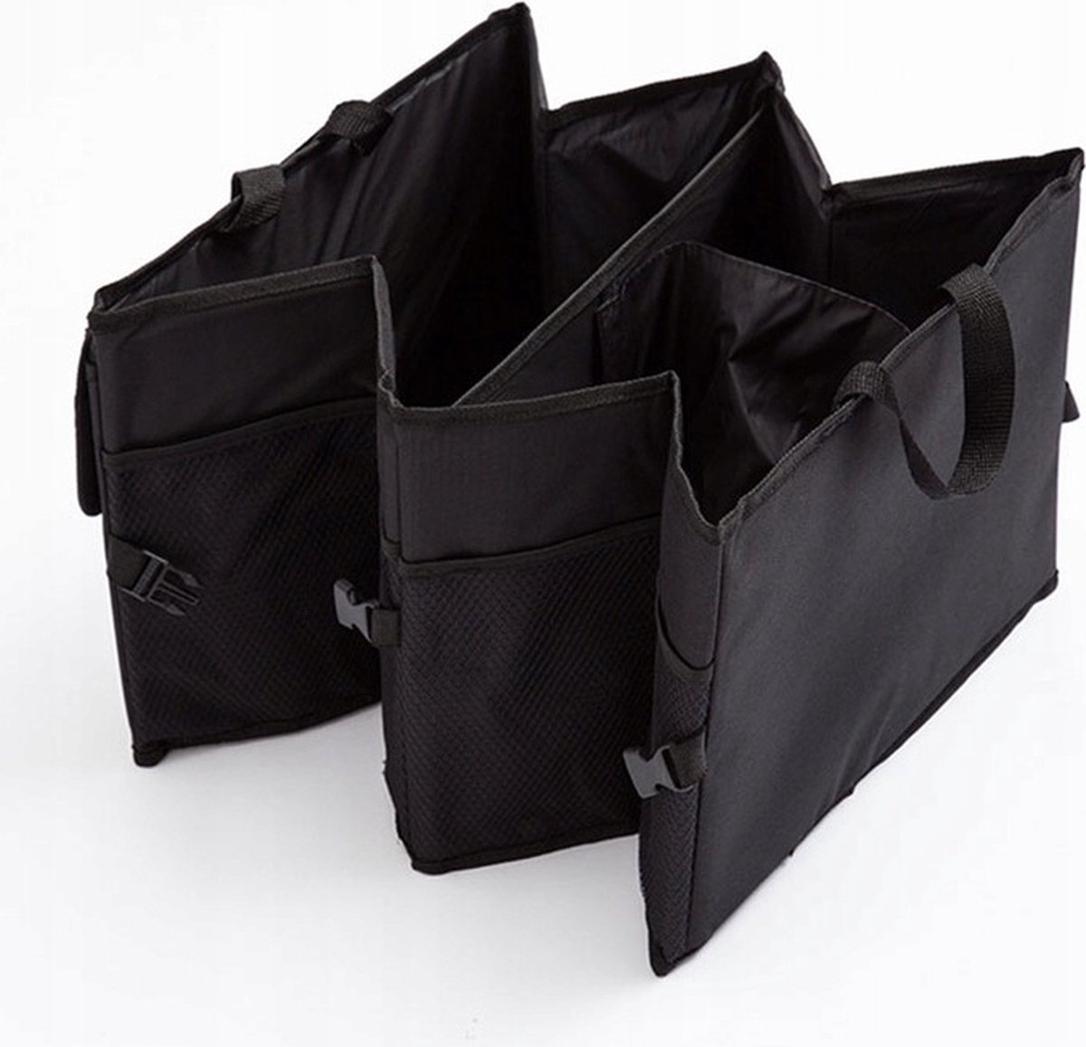 Organizertas voor kofferbak, gemakkelijk op te vouwen en uit te klappen. Deze organizertas maakt het gemakkelijker om de kofferbak op orde te houden. De tas is ruim en praktisch. De tas heeft handvatten om het tillen van de tas makkelijk te maken.